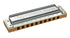 Hohner Marine Band 1896 F-MajorWhen the Marine Band was first introduced to the American market in 1896, no one couldhave foreseen the las t ing impac t thi s ins trument would have on the future of popularmusic. The af fordable price and small s ize made it the per fec t travel l ing companion.This was the s tar ting point of our Marine Band Series, which has gone on to play a key rolein unleashing the raw emotion of the blues , the free spirit of country, or the energy ofrock ’n’ roll. From the classic 1896 to the modern Crossover, the Marine Band Series of fer s a range of genre-defining ins trument, which are the choice for countless leading harmonica ar tis ts today. All ins truments of the Marine Band Series are madein Germany.Traditional assembly with nailReed plates and covers are affixed with nails for the traditional look and feelDouble lacquered pearwood combComb sealed with 2 layers of clear lacquer to reduce swellingTECHNICAL DETAILSReed plates (material, thickness): brass, 0.9 mmReed plates (surface): brassReeds (number, material): 20, brassComb (material, color): pearwood, brownComb (finish): double lacqueredMouthpiece (surface): pearwoodCover plates: stainless steelKeys: HG, F#, F, E, Eb, D, Db, C, B(H), Bb, A, Ab, GType: diatonicTuning: Richter, Harmonica Minor and Natural Minor. Nm and hm just in F#, F, E, Eb, D, Db, C, B(H), Bb, A, Ab, GNumber of holes: 10Tonal range *: 3 octavesLength: 10 cm / 3.9”
