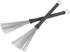 A pair of retractable stiff wire drum brushes with hard black plastic handles.