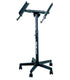 QL 400Fully adjustable studio locator stand for equipment from 14.4” to 21” (36.5 - 53.5 cm) wide.Perfect stand for securely holding studio remote units, digital or analog multi-track recorders, mid data input devices and small mixers up to 26” (66 cm) deep. Ideally suited for home, project, multimedia and professional recording studios.Width, depth and tilt adjustable steel platform with padded cushions holds equipment firmly and safely in place. Locking height adjustability allows the user to be sitting or standing.Five wheel, easy roll, injectionmolded plastic base with locking casters.SpecificationsWidth platform:36.5 to 53.5 cm Depth platform:30 to 40.5 cm Height (side lip):5 cm Tilt angle range: 360°Height positions (5)*: 69 /75.5 /82 /88.5 /95 cm Diameter of wheel base: 58 cm Weight Capacity: 36.2 kg Weight: 6.2 kg