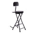 Sammenleggbar stol med ryggstøtte og innebygd gitarstativ, egnet for både akustiske og elektriske gitarer.
