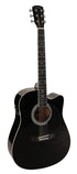 dreadnought guitar, S. American roupana fb & bridge, diecast machine heads, cutaway, active EQ, bla
